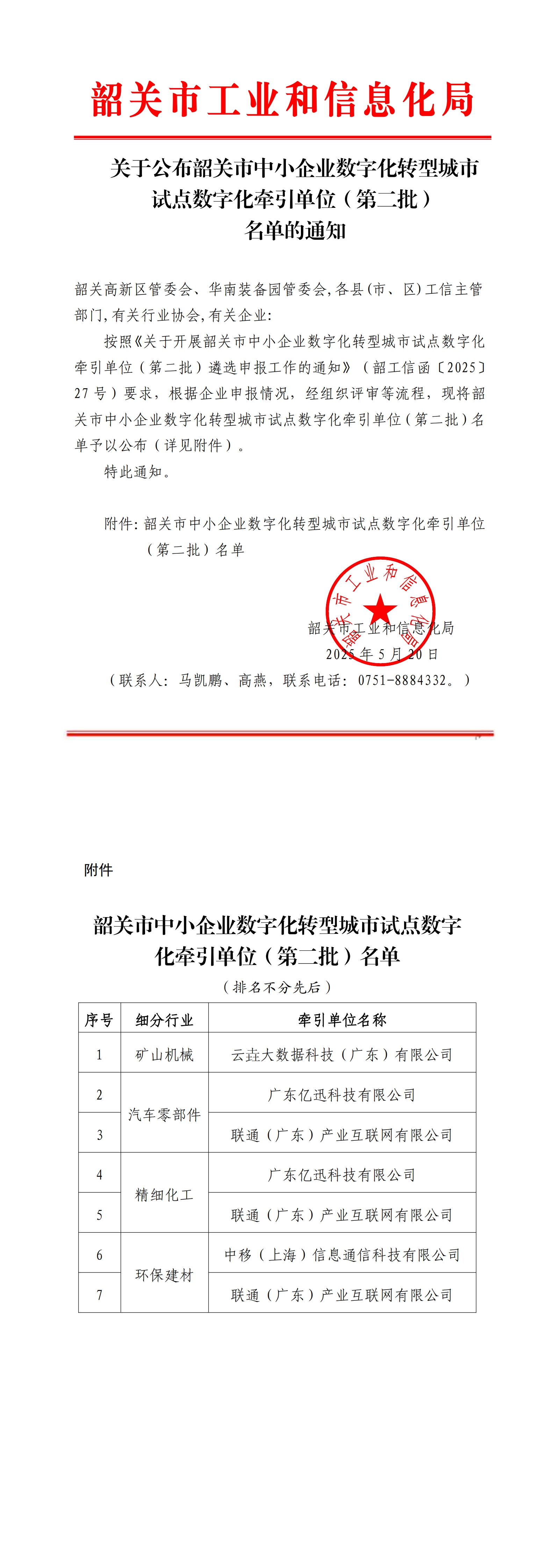【韶关】关于公布韶关市中小企业数字化转型城市试点数字化牵引单位(第二批)名单的通知